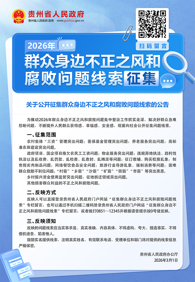 关于公开征集群众身边不正之风和腐败问题线索的公告